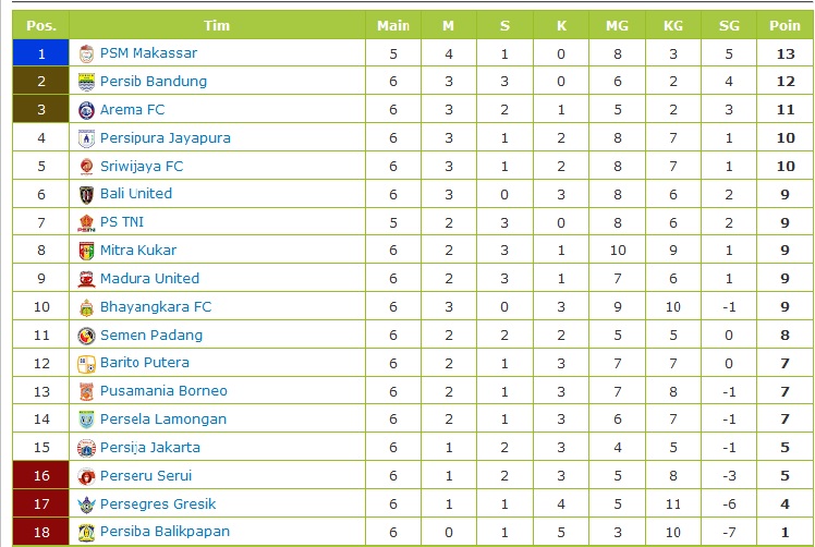 Mindestquoten Wett- und Zahlungsmethoden-Ausnahmen gelten. 17700 likes 4 talking about this. Update Klasemen Liga 1 Indonesia Pasca Arema vs Bhayangkara Bali United Pepet Persib Bandung Hasil sementara ini pun membuat PSM Makassar menguntit Bhayangkara yang berada diposisi ke-3 klasemen.