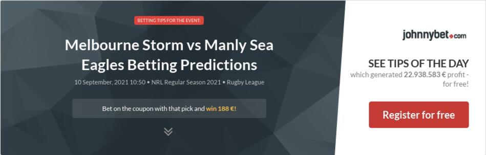 Storm vs Manly Tips Odds Predictions. Select the sports you want to hear about and TSZ will send the best previews analysis and predictions straight to your inbox. Manly Sea Eagles were beaten by in-form NRL leaders Melbourne Storm last week but they showed enough character in that contest to suggest that they will be in the.