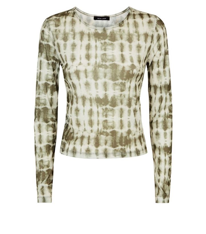 Green Tie Dye Mesh Long Sleeve Crop Top Prettylittlething